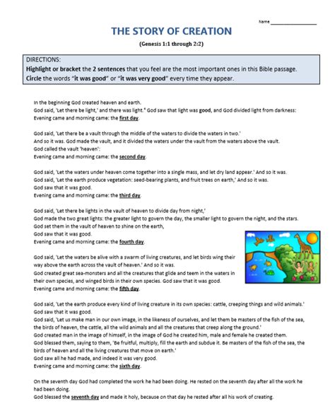 Where Can I Find Second Story of Creation Worksheet Answers?