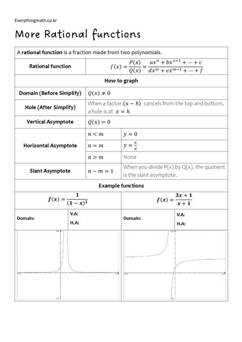 Asymptotes of Rational Functions Worksheet Precalculus Answer Key
